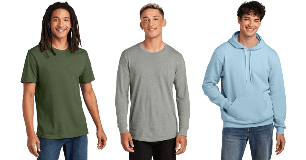 • Everyday Tees, organic cotton, hemp blends, and recycled fabrics offer a soft, comfortable, lower-impact alternative